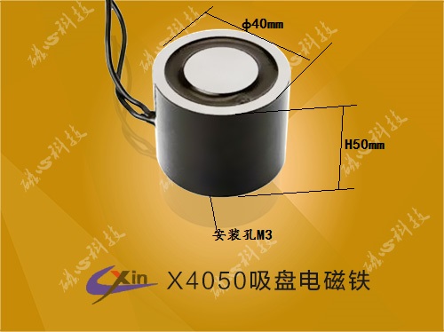 自保持吸盤電磁鐵KP4050,是磁心科技研發(fā)的一款失電式保持式電磁鐵,產(chǎn)品直徑40mm,高度50mm,在不通電的情況下有磁性,通電時消磁,是磁心科技研發(fā)的一款環(huán)保、節(jié)能、安全的一款新型的電磁鐵。具體介紹如下: