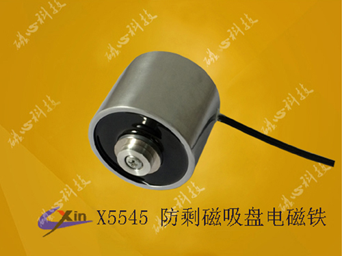 X5545防剩磁吸盤電磁鐵屬于微型直流吸盤式電磁鐵,電磁鐵廠家研發(fā)、生產(chǎn)的防剩磁吸盤電磁鐵X5545具有大吸力的同時可以有效的把剩磁降低至5克之內(nèi),產(chǎn)品的直徑為55mm,高