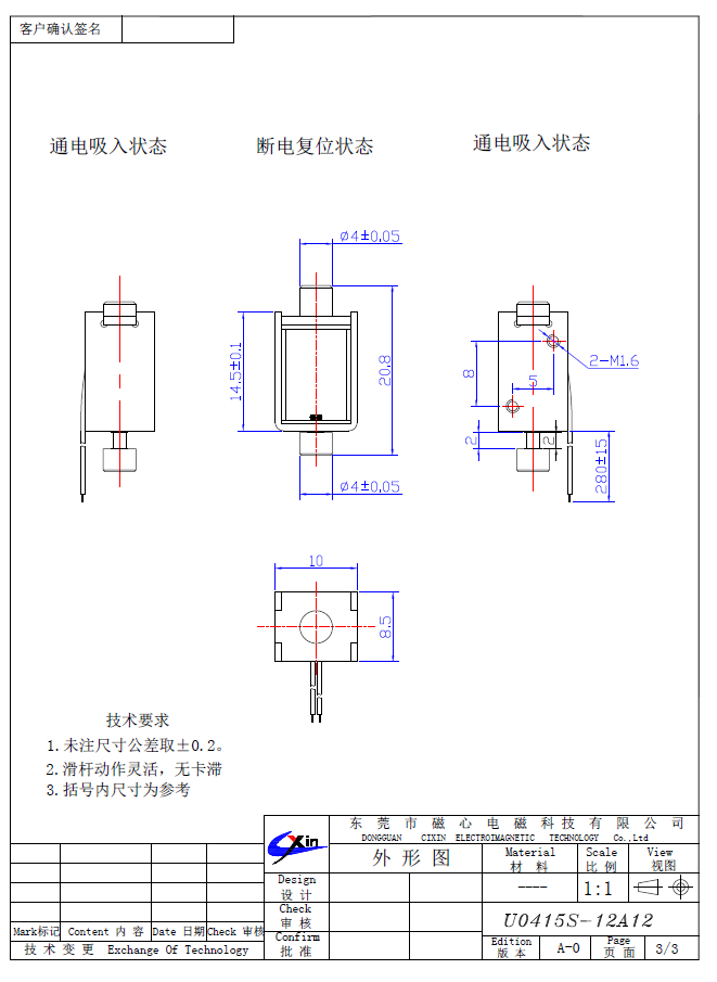 U0415框架電磁鐵體積小,產品整體尺寸小,采用彈簧內徑,節省安裝空間和產品的適用性。