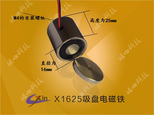 吸盤電磁鐵X1625主要用于自動化設備、機械手、自動門鎖等產品上,磁心科技大批量生產吸盤電磁鐵系列產品,如果上述產品和您的需求不
